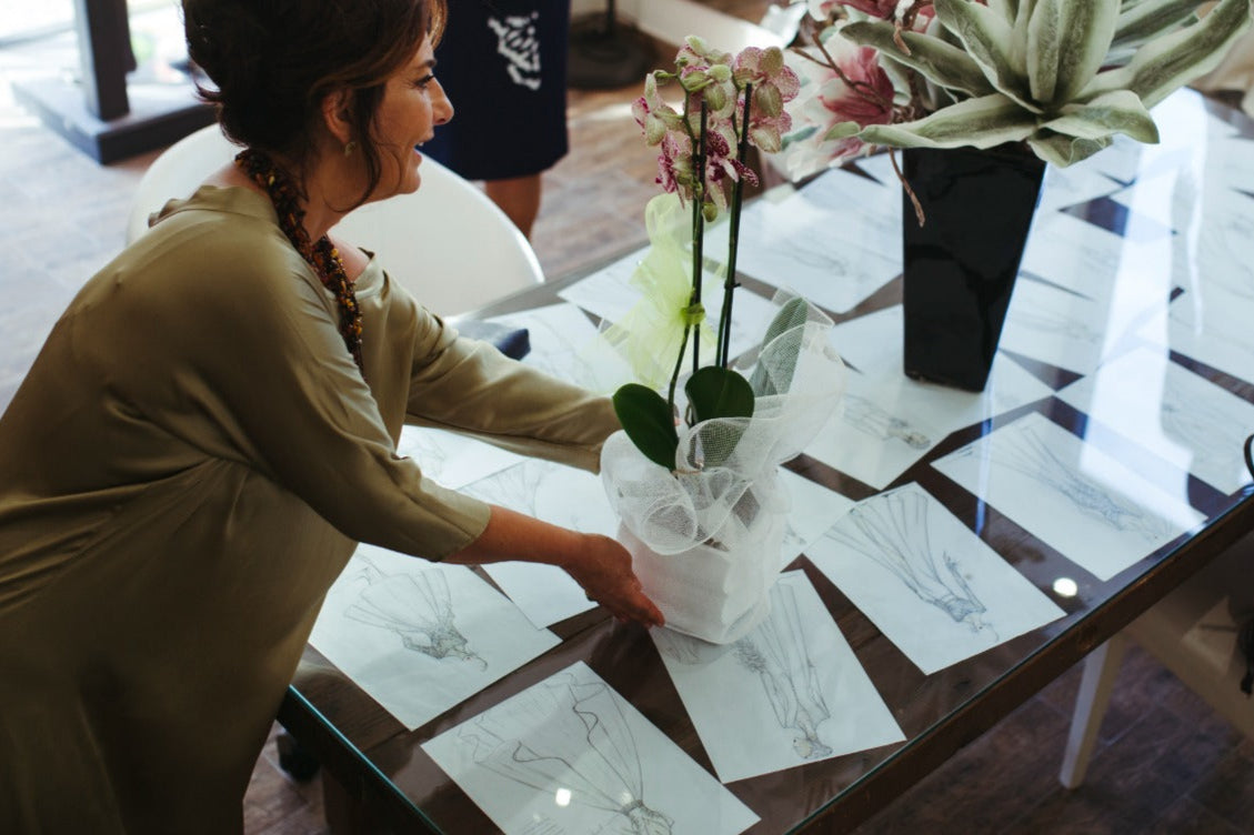 Ogni nostra creazione prende vita seguendo due percorsi complementari: da un lato, il desiderio unico di una cliente per la linea su misura; dall’altro, la nostra visione stilistica per la linea prêt-à-porter. In entrambi i casi, l’eccellenza è il filo conduttore. La selezione di tessuti pregiati, l’attenzione meticolosa ai dettagli e alle rifiniture guidano un processo che parte dal disegno e prende forma grazie alla maestria delle nostre sarte, trasformando ogni capo in un’opera di eleganza e artigianalità.